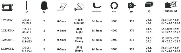 LZ5600NL:為大旋梭厚料平縫機;LZ5600NL:With big hook, Suitable for heavy material